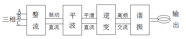 GGP系列固態(tài)高頻電源采用現(xiàn)代電力電子(交-直-交)變換技術(shù),將三相工頻50Hz的交流電經(jīng)整流單元轉(zhuǎn)變?yōu)槊}動直流,然后通過濾波單元變換為平滑直流,再通過逆變器將直流電轉(zhuǎn)變?yōu)閱蜗喔哳l交流電(100~600kHz)送至匹配變壓器,為由曹路電容、感應器等組成的串聯(lián)諧振電路提供能量,感應器通過非接觸方式將能量傳遞給工件,以達到感應加熱的目的。該電源采用MOSFET模塊作為逆變器的核心元器件,整流和逆變單元均采用單片機作為核心控制器件,具有電路穩(wěn)定可靠、操作簡單、調(diào)試方便。